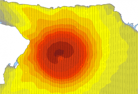 Computed wave field for tropical cyclone GONU